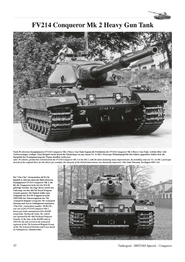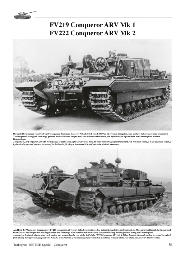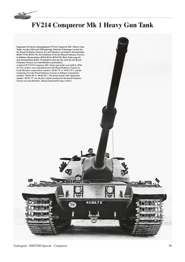 This publication describes the development history, the technology, variants and the only eight year long in-service life of the Conqueror heavy gun tank. Also covered is the Conqueror armoured recovery vehicle.