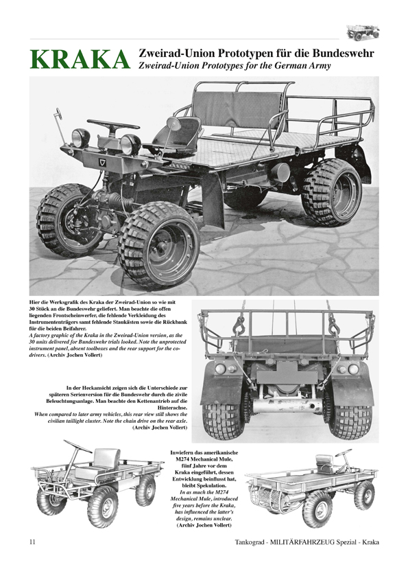 At the beginning of the 1960s, the German Army was still in its build-up phase, and the search was on for an air-transportable weapon carrier that would be light and robust enough to be dropped by parachute alongside paratroopers. It also had to be compact enough for deployment inside transport helicopters or as an external load. After an almost ten-year test phase of prototypes and various mission kits, the “Kraka” motor cart was finally delivered to the Bundeswehr Airborne Division in 1974 as the “0.75 ton Truck, Folding, Flatbed”, where it proceeded to serve for more than 20 years.