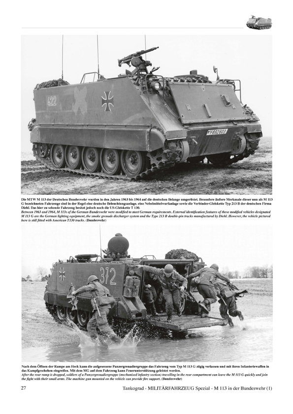 No other vehicle in the history of modern armoured vehicles has been nearly as successful as the American M113 armoured personnel carrier (APC). The Heer (Army) of the German Bundeswehr also procured this successful vehicle from 1962 onwards, fielding it under the name Mannschaftstransportwagen (MTW) M 113. In the Cold War period, some 4,000 M 113s and variants belonged to the vehicle inventory of the German Army, among them many specialised variants. During their service with the German Bundeswehr, vehicles of the M 113 family were also put through several programmes aimed at improving their combat capabilities and extending their in-service life.