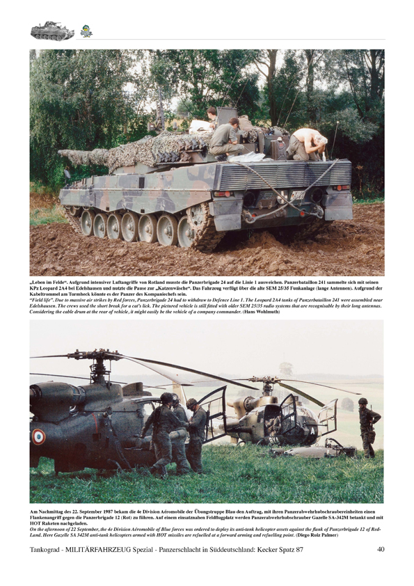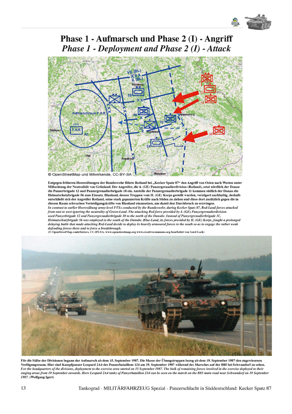 Field training exercise (FTX) Kecker Spatz 87 (Bold Sparrow 87) was held in the southern part of West Germany from 21-24 September 1987 under the sponsorship of II (GE) Korps of the Bundeswehr. It was the largest German-French exercise of the Cold War, involving approximately 55,000 German and 20,000 French troops, 16,800 wheeled and 2,200 tracked vehicles, and more than 480 helicopters. This publication describes the motor pool of both sides with many hiterto unpublished exercise photographs, maps and extensive textual coverage.