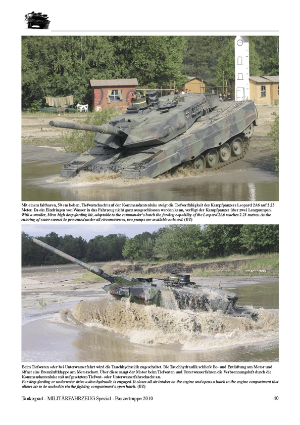 The army of the German Armed Forces currently undergoes a transformation called "Neues Heer 2010", the ‘New Army 2010'. The Panzertruppe (armoured corps) of the Bundeswehr (modern German army) is thus in the midst of a tremendous reorganization when compared to the structure during its creation in the mid-1950s, the later Cold War years and even after the German Reunification of the mid-1990s. Aside from the largest force-reduction ever carried out in the past years, the Leopard 2A4 that created the core and backbone of the Panzertruppe in the past thirty years was stricken from active service in late 2008. Thus, today only the Leopard 2A5, 2A6 and 2A6M remain in service. The written part of this publication gives a brief history of the Bundeswehr Panzertruppe, the new organisation under ‘New Army 2010' and highlights the service record of the tank battalions still in existence. The pictorial part shows the last years of the Leopard 2A4 in active service and, most importantly, the motor pool of the ‘Panzertruppe 2010' that will make up the core of a new army for the years to come.