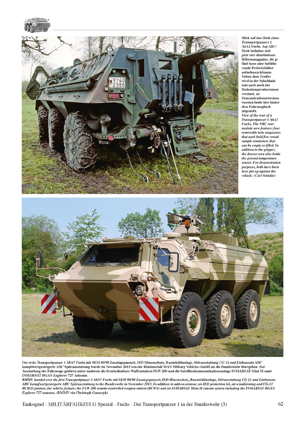 This work in four parts covers the development, prototypes, technology, the different mounting kits, mission kits, equipment sets and combat capability improvements of the Fuchs in unprecedented detail.