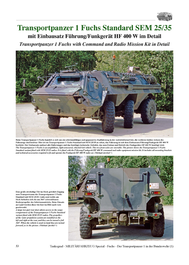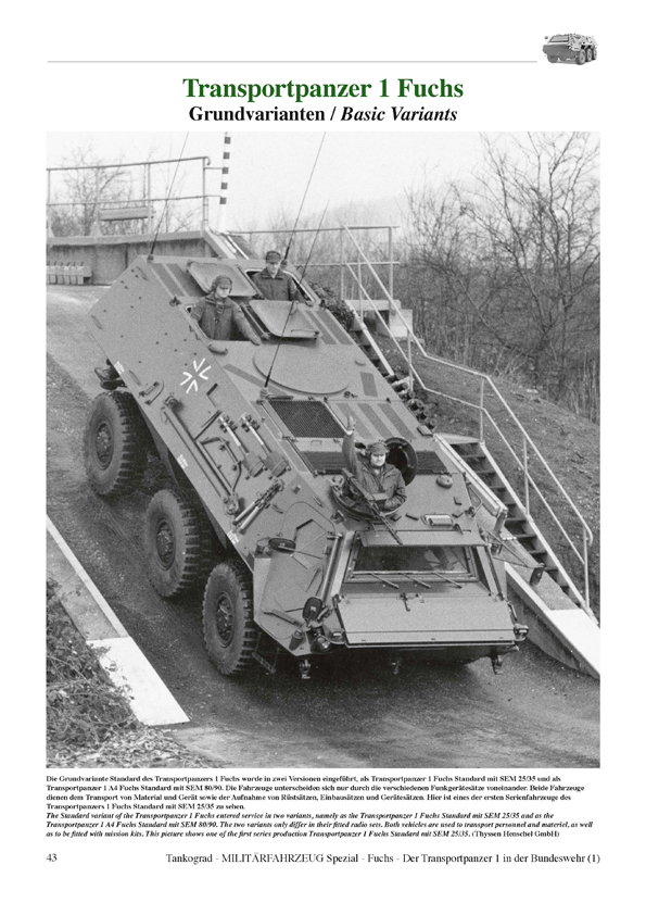 This work in four parts covers the development, prototypes, technology, the different mounting kits, mission kits, equipment sets and combat capability improvements of the Fuchs in unprecedented detail.