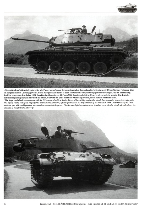 With the foundation of the Modern German Army, Bundeswehr, the demand for tanks for the Armoured Corps and Cavalry became critical. To equip the new army with capable armoured vehicles the American tank types M 41 and M 47 were chosen to form the core of the new Panzer units. This publication for the first time covers the technology, development and history of the M 41 and M 47 in Modern German Army service.