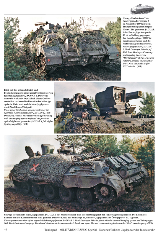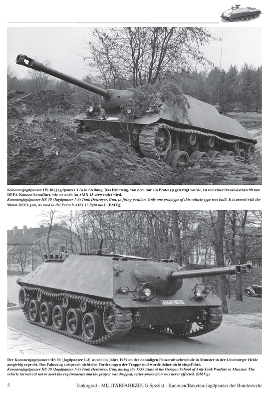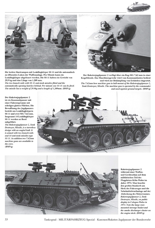 The new German Army, the Bundeswehr, demanded already in 1956 the production of new and capable Tank Destroyers Gun and Missile to deal with the Warsaw Pact armoured threat. Consequently a new vehicle family, the Kanonenjagdpanzer (Gun) and Raketenjagdpanzer (Missile), were developed. This publication describes these vehicles in detail and in service from 1959 to 2005.