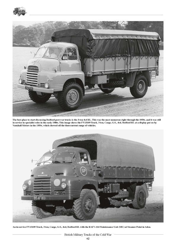 The end of hostilities in 1945 left the British forces with a massive surplus of military vehicles placed throughout the many countries involved in the conflict. Much of this equipment after six years of war was in a very poor state of repair, and a lot was only fit for scrapping. The development and use of military trucks in the post-war period was therefore dominated by the feverish search for the ideal military vehicle. Moves had been made between the War Office and British manufacturers to produce a family of standard types to avoid the logistical nightmare that had occurred during the war with so many different makes. This search for much more suitable tactical-truck designs in the early 1950s created a period that was brimming with new ideas. The upcoming Cold War ushered in an incredible demand for a future, potentially nuclear clash between NATO and the Warsaw Pact on European soil. The fear of World War Three made possible one of the most creative design periods in military technology ever. The introduction of the FV numbering system additionally aimed at standardising the British military vehicle. After the war it blossomed into the idea of idealised military truck designs. The result of this heyday of military vehicle development was amazing trucks taking shape on drawing boards.
