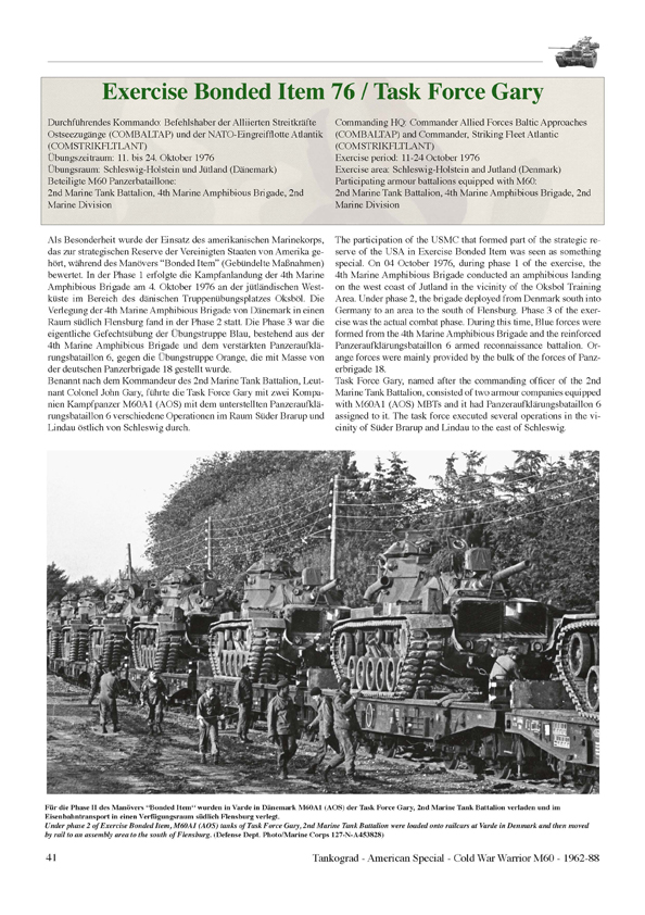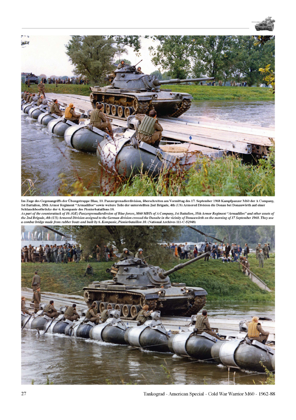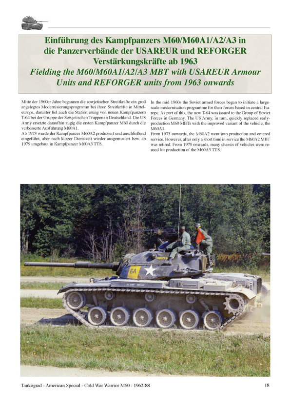 Der amerikanische Kampfpanzer M60 war das Symbol des Kalten Krieges in Deutschland, kein anderes Fahrzeug der NATO verkörperte damals so stark die Konfrontation zwischen Ost und West. In vorliegener Publikation werden die verschiedenen Ausführungen des M60 bei den Panzerverbänden der US Army, Army National Guard und des US Marine Corps in Deutschland wie eine Zeitreise durch den Kalten Krieg zwischen 1962 und 1988 bei Manövern am „Eisernen Vorhang“ und bei Truppenübungsplatzaufenthalten mit einer großen Zahl bisher unveröffentlichter und auch besonders seltener farbiger Einsatzaufnahmen eindrucksvoll dargestellt.