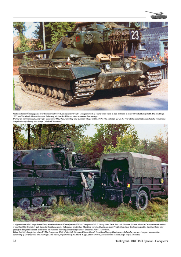 Der schwere Kampfpanzer FV214 Conqueror Heavy Gun Tank wurde in den Anfangsjahren des Kalten Krieges entwickelt und war die Antwort der British Army auf die Bedrohung durch die schweren sowjetischen Kampfpanzer, zum Beispiel den IS-3 oder den T-10. Falls aus dem Kalten Krieg ein richtiger Krieg geworden wäre, hätte man den Conqueror als Panzerjäger eingesetzt, da er in der Lage war, feindliche Panzer auf Entfernungen jenseits der Kampfentfernungen der Kampfpanzer Centurion auszuschalten.Vorliegende Publikation beschreibt die Entwicklungsgeschichte, die Technik und Varianten sowie den Einsatz des schweren Kampfpanzers Conqueror, der für nur kurze acht Jahre primär bei der British Army of the Rhine auf deutschem Boden zum Einsatz kam. Im Weiteren wird der Conqueror Bergepanzer abgehandelt.