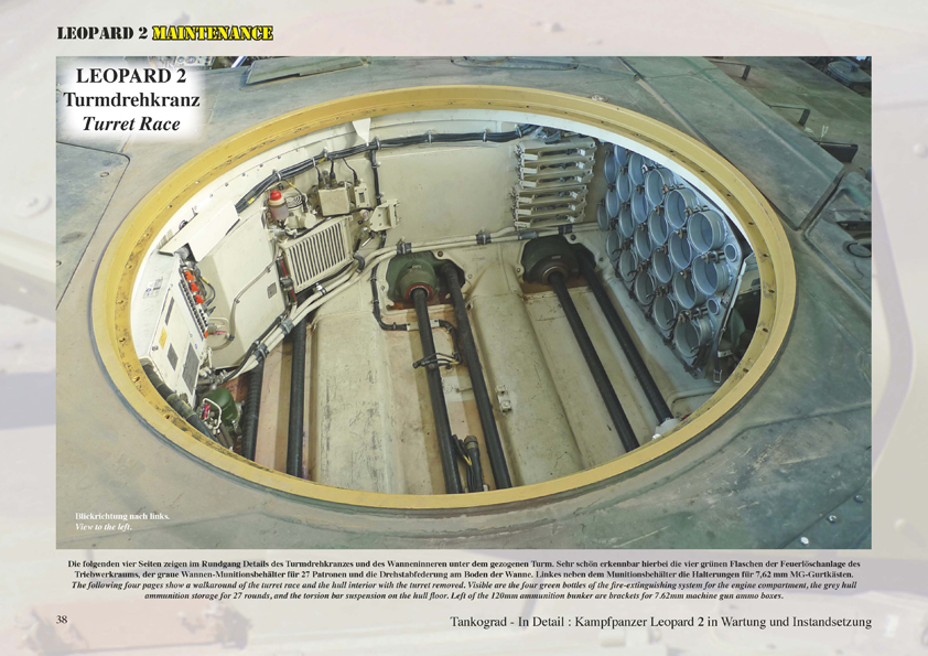 Eingeführt mitten im Kalten Krieg war der Kampfpanzer Leopard 2 von Beginn seiner Einsatzzeit an ein Meilenstein. In den vergangenen Jahrzehnten gab es zahlreiche namhafte Publikationen zur Leopard-Panzerfamilie, die mehr oder minder detailliert die einzelnen Baulose erläuterten und bildlich darstellten. Der Hintergrund dieses Publikation ist daher nicht, die gesamte Geschichte des Leopard 2 nochmals aufzurollen, sondern vielmehr einen ganz bestimmten Aspekt der Leopard-2-Technik detailliert darzustellen, der sonst immer nur am Rande und beiläufig aufgezeigt wird: Das Fahrzeug in der Wartung und Instandsetzung. Dazu zählen zum Beispiel Abnahme der Ketten, das Ziehen des Turmes und des Motors, oder die Demontage der Zusatzpanzerungselemente. Gerade diese Tätigkeiten zeigen technische Details auf, die den Gesamtentwurf deutlicher beleuchten können, und geben somit dem technisch Interessierten die Möglichkeit, „hinter die Kulissen" des Entwurfs zu blicken. Weiterhin werden erstmals Ausbildungsmittel der Besatzungen gezeigt.