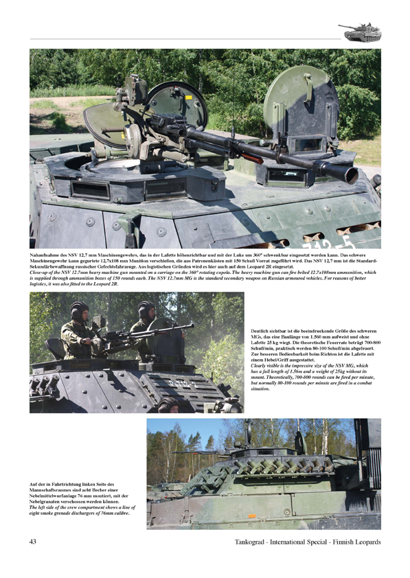 Diese Publikation zeigt die drei finnischen Leopard-2-Varianten Kampfpanzer 2 A4, Pionierpanzer (Minenräumer) 2R und Brückenlegepanzer 2L detailliert und in umfangreichem, bisher unbekanntem Bildmaterial.