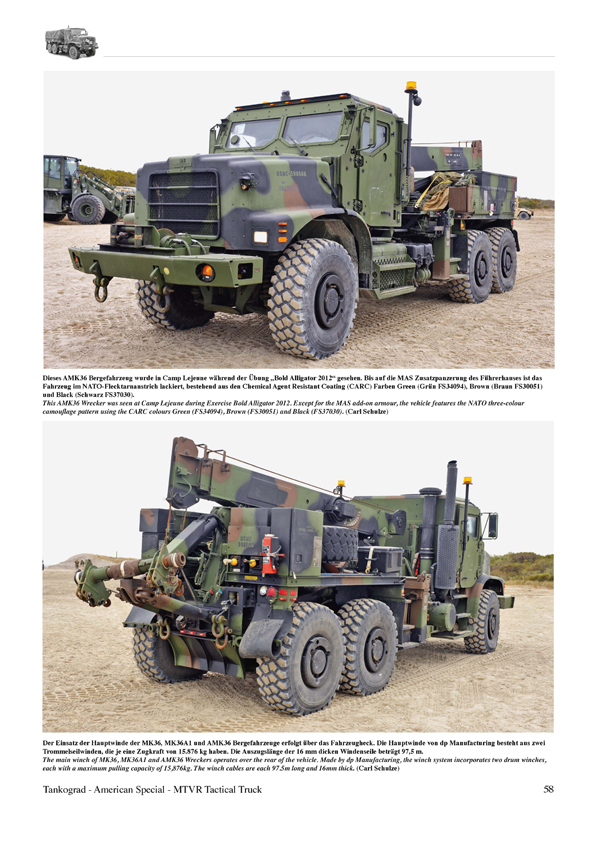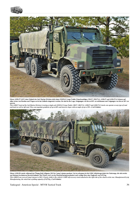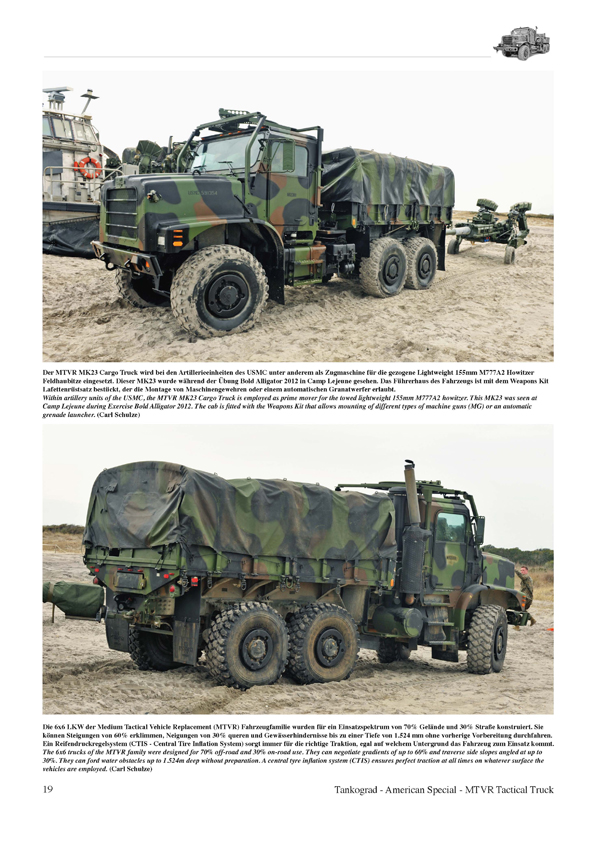 Bei der Medium Tactical Vehicle Replacement (MTVR) Fahrzeugfamilie handelt es sich um eine Serie geländegängiger taktischer LKW, die von der Oshkosh Corporation speziell für das United States Marine Corps entwickelt wurde. Bei der Truppe ersetzten die MTVR ab dem Jahr 2000 nach und nach die LKW der M809 5-ton, 6x6 Truck Series und der M939 5-ton, 6x6 Truck Series. Bis heute wurden etwa 11.500 MTVR gefertigt, der Großteil der Fahrzeuge befindet sich beim USMC und der US Navy im Einsatz. Unter den zahlreichen Varianten, die in dieser Publikation ausführlich beschrieben werden, finden sich z.B. der MK23 Cargo Truck, MK27 Extended Bed (XL), MK29 Dump Truck, MK31 Tractor und der MK36 Wrecker sowie die diversen Zusatzpanzerungsprogramme wie das Armor Protection Kit (APK) und das MTVR Armor System (MAS).