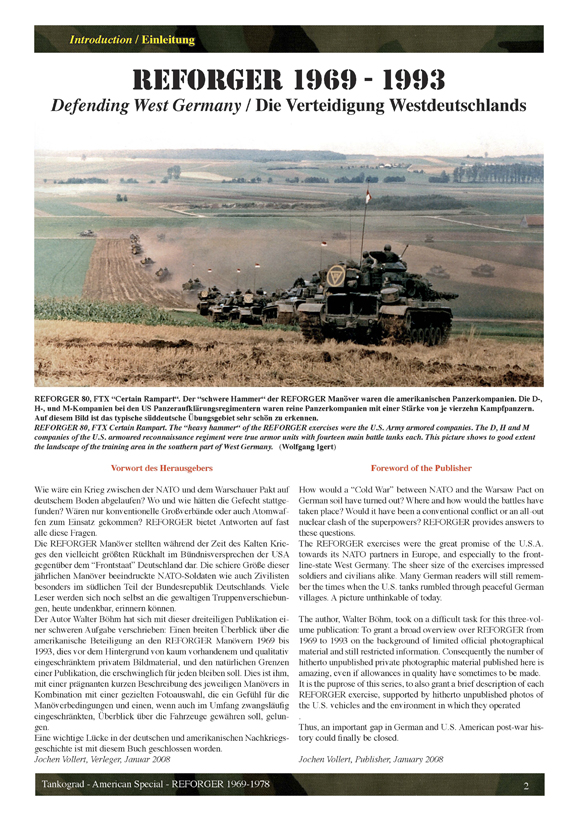 Die REFORGER Manöver spielten dieses Szenario im Großmanöver durch. Diese dreiteilige Publikation bietet einen breiten Überblick über die amerikanische Beteiligung an den REFORGER Manövern 1969 bis 1993 mit einer prägnanten kurzen Beschreibung des jeweiligen Manövers in Kombination mit einer gezielten Fotoauswahl zu den eingesetzten Fahrzeugen.
