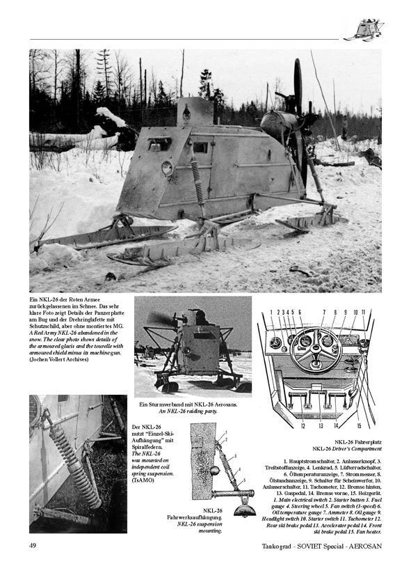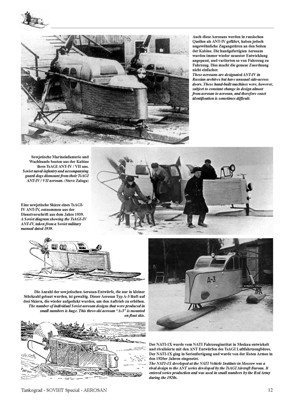 Der Aerosan (russisch für Propellerschlitten, Motorschlitten mit Luftschraubenantrieb) ist eine ganz besondere Form eines Militärfahrzeugs, das in der ersten Hälfte des 20. Jahrhunderts von einigen Nationen, die mit besonders langen und schneereichen Wintern leben müssen, entwickelt wurde. Die Sowjetunion sticht aus dieser Gruppe heraus, da man dort die militärische Anwendung stark forcierte. Aerosans wurden von den Zaristischen Truppen im 1. Weltkrieg, im Russischen Bürgerkrieg, im Russisch-Finnischen Winterkrieg von 1939-40 und von der Roten Armee während der Wintermonate des 2. Weltkrieges eingesetzt. Hierbei zeigten sich die Aerosans aufgrund der in der Sowjetunion vorherrschenden klimatischen und topografischen Bedingungen gegenüber Rad- und Kettenfahrzeugen als besonders geeignet. In diesem Buch werden die Aerosans der sowjetischen Streitkräfte sowie die Entwicklung und der Einsatz finnischer und deutscher Propellerschlitten bis zum Ende des 2. Weltkrieges dargestellt. Dies ist das vollständigste Werk zum Thema militärischer Aerosan, das jemals veröffentlicht wurde.