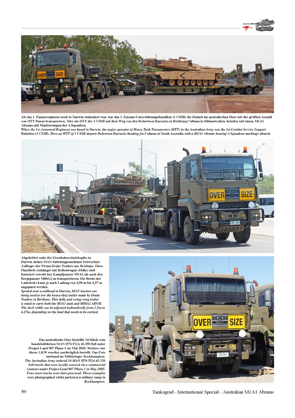 Among the export versions of the American M1 Abrams main battle tank family the Australian M1A1 AIM SA certainly is the most compelling. The opening chapter of this publication features in-the-field shots of the "Aussie" M1A1 Abrams whilst on exercise, and this is followed by a walkaround showing the tank in more detail. Another chapter features the M88A2 HERCULES armoured recovery vehicle purchased for the Abrams-equipped units. A number of combat support vehicles (e.g. tank transporters, fuel tankers) are regularly seen operating alongside the M1A1s and M88A2s, and a selection of these vehicles appear in the final section of this volume. This is the first comprehensive documentation on the topic.