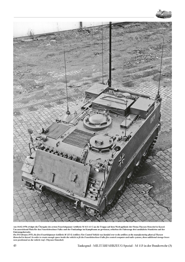 No other vehicle in the history of modern armoured vehicles has been nearly as successful as the American M113 armoured personnel carrier (APC). The Heer (Army) of the German Bundeswehr also procured this successful vehicle from 1962 onwards, fielding it under the name Mannschaftstransportwagen (MTW) M 113. In the Cold War period, some 4,000 M 113s and variants belonged to the vehicle inventory of the German Army, among them many specialised variants. During their service with the German Bundeswehr, vehicles of the M 113 family were also put through several programmes aimed at improving their combat capabilities and extending their in-service life.